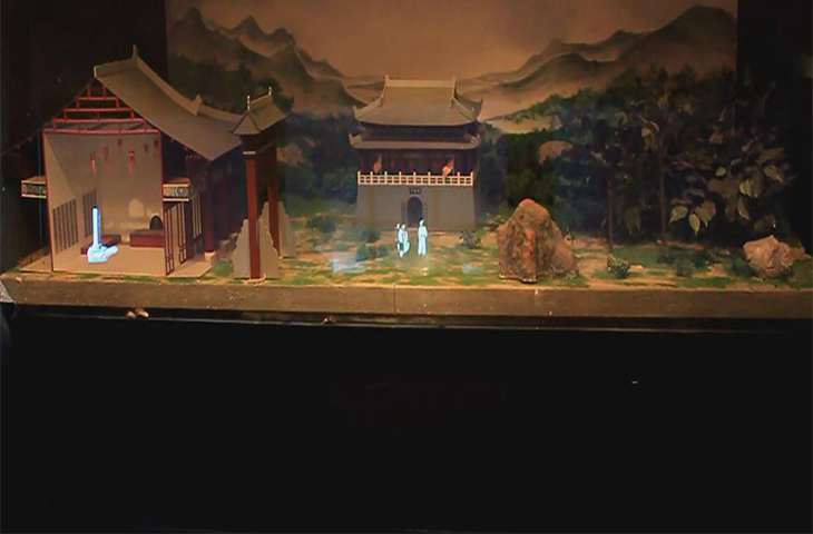 3、 多面化:幻影成像技術涵蓋是多面化的,例如《走進漢陽陵展廳》,在整個幻影成像中不僅加入了主持人的形象,還將一面屏風做為播放媒介播放相關的歷史影片,從現代到古代、從傳統到未來,使得參觀者目不暇接、感同身受;
